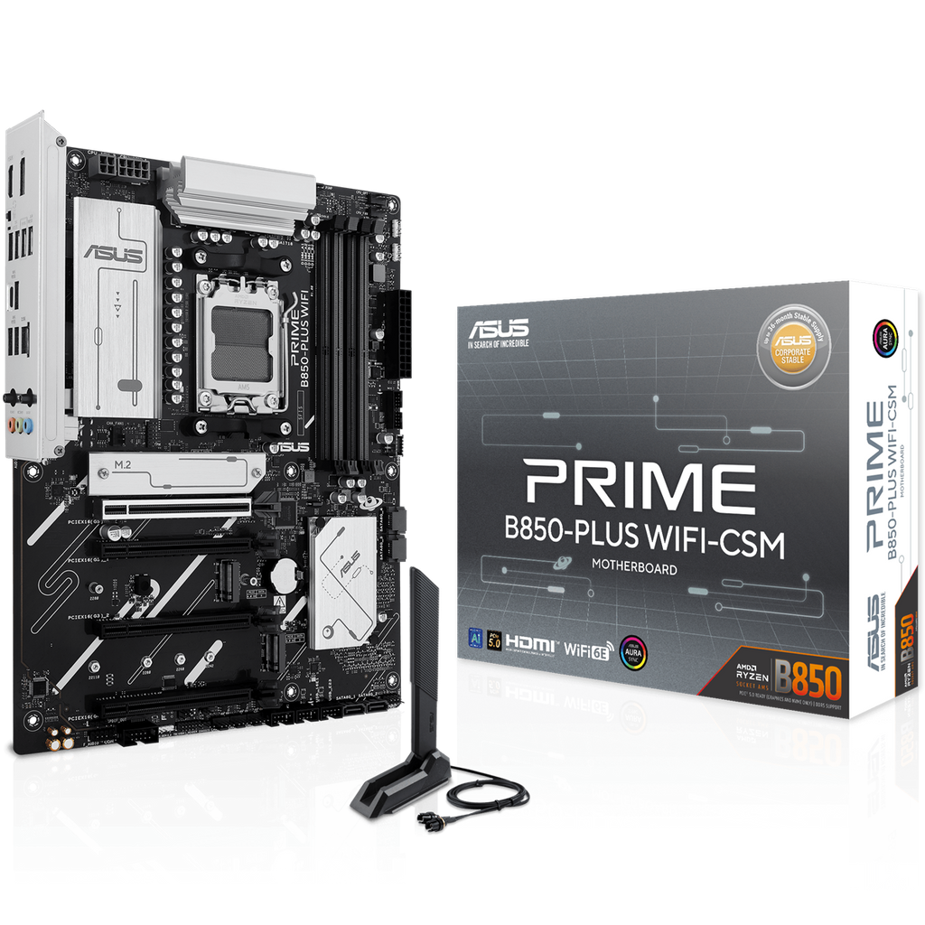 ASUS Prime series motherboards are expertly engineered to unleash the full potential of AMD Ryzen™ 9000 series processors. The PRIME B850-PLUS WIFI-CSM motherboard provides users and PC DIY builders with a range of performance optimizations via intuitive software and firmware features.