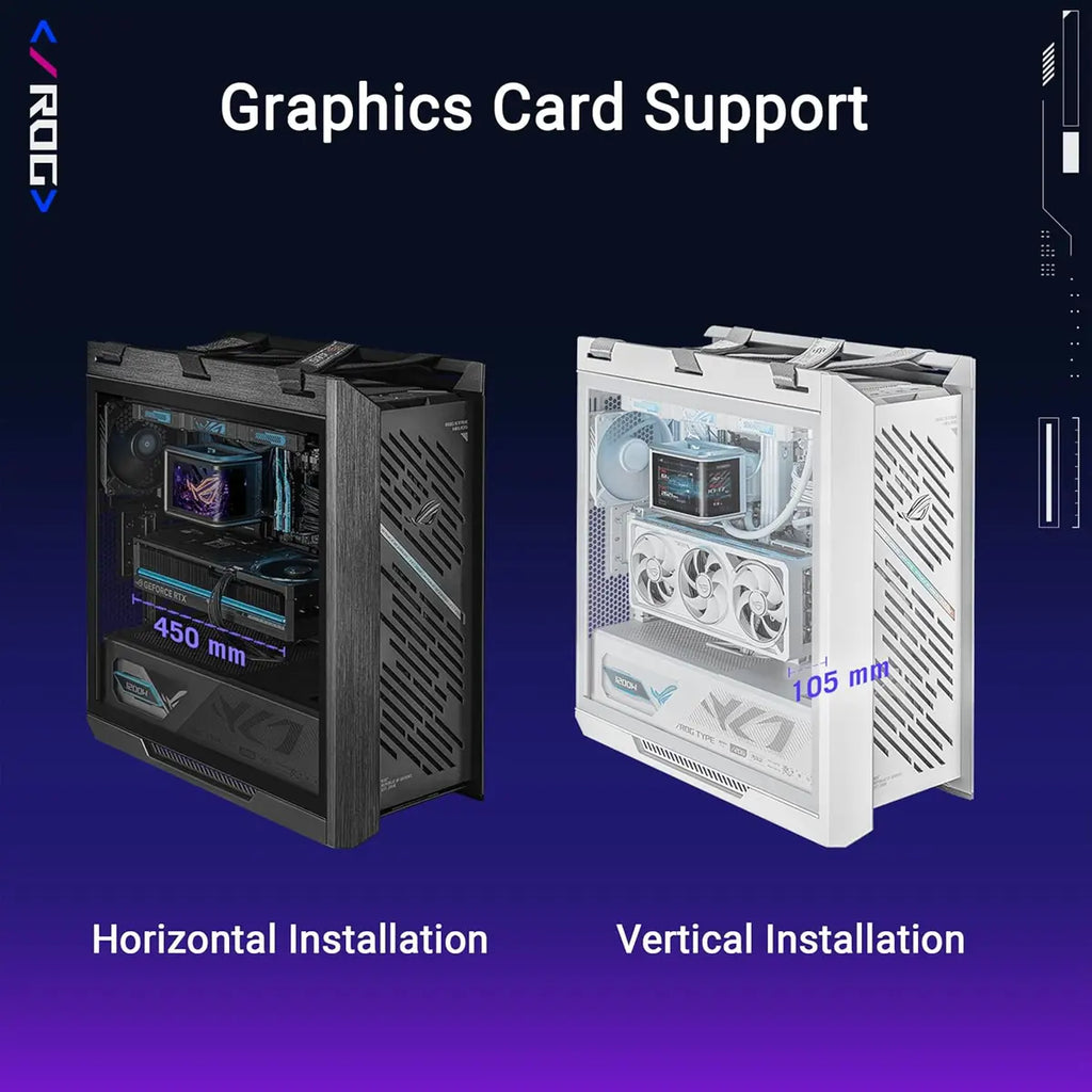 Ready for the DIY experience: PC building is made easy with support for EATX motherboards and graphics cards up to 450mm long, plus a graphics card slot clamp and a rear detachable PSU bracket