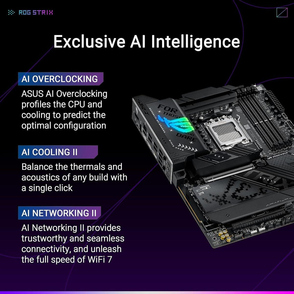 Intelligent Control: ASUS-exclusive AI Overclocking, AI Cooling II, AI Networking II and AEMP to simplify setup and improve performance