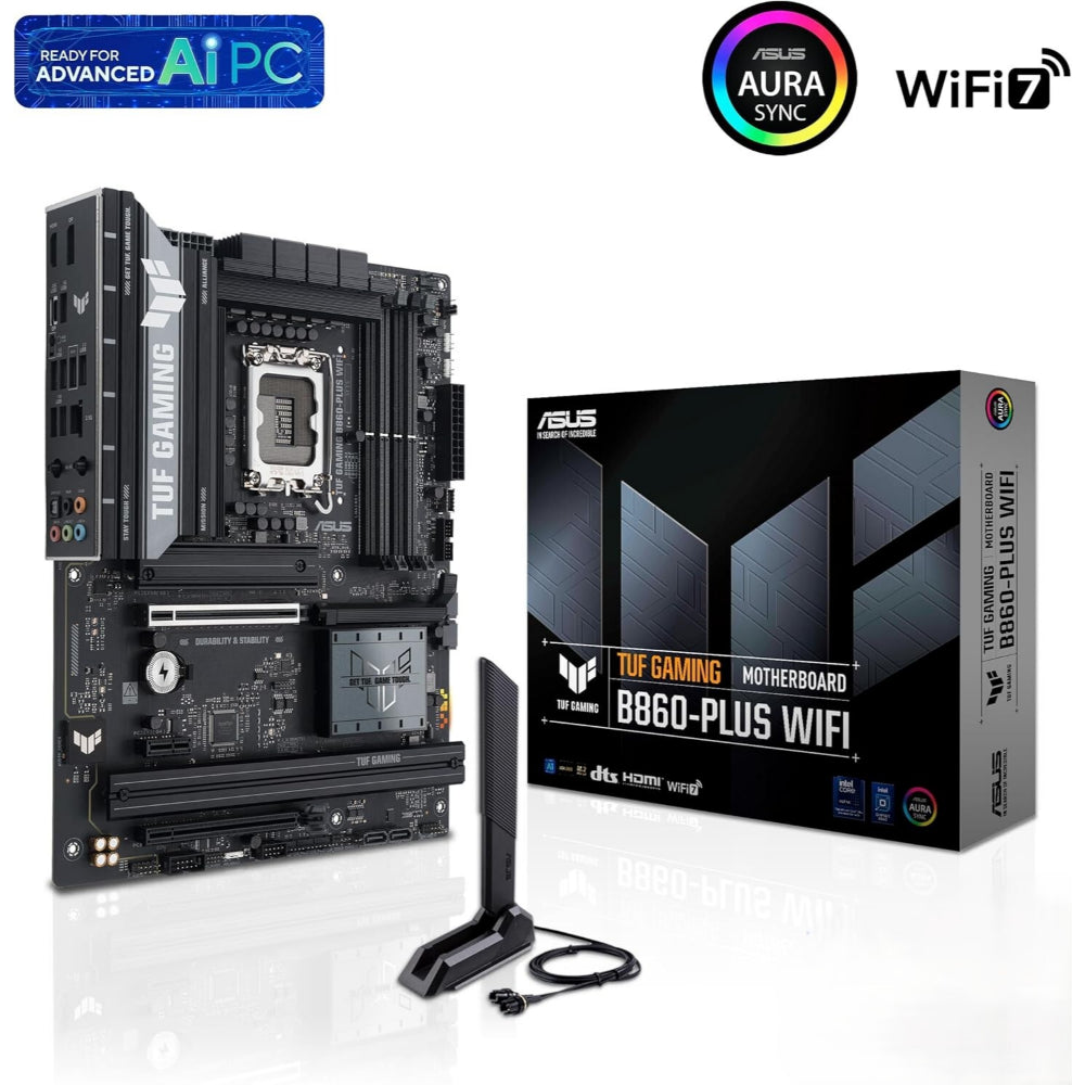 ASUS TUF GAMING B860-PLUS WIFI takes all the essential elements of the latest Intel Core Ultra Processors (Series 2) processors and combines them with game-ready features and proven durability. Engineered with military-grade components, an upgraded power solution and a comprehensive cooling system, this motherboard goes beyond expectations with rock-solid and stable performance for marathon gaming. TUF GAMING motherboards also undergo rigorous endurance testing to ensure that they can handle conditions where others may fail. This platform delivers the power and connectivity that advanced AI PC applications demand.