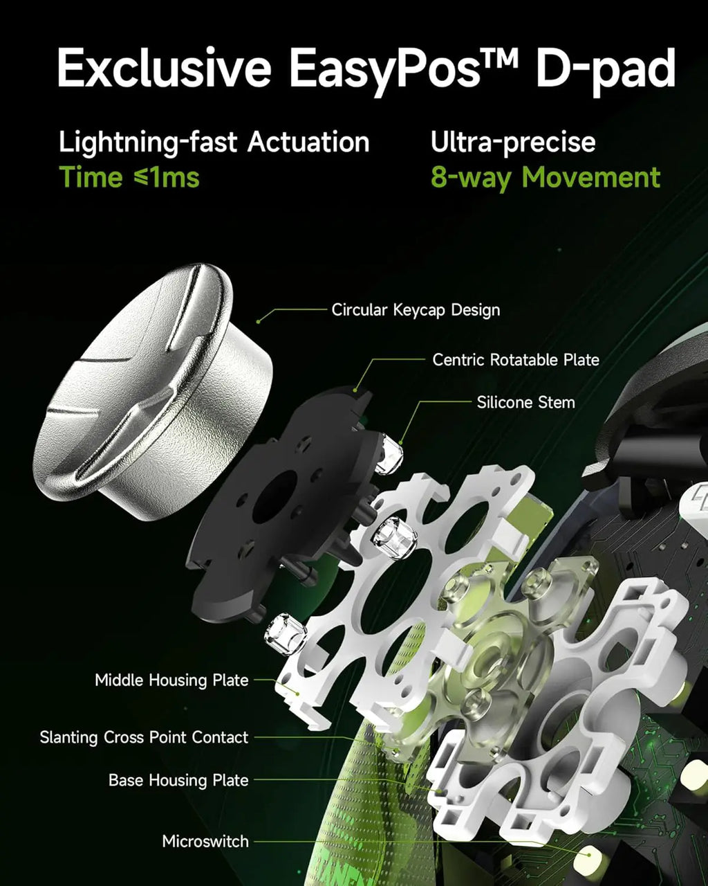 Exclusive EasyPos™ D-pad: Powered by EasySMX’s exclusive EasyPos™ technology, the D-pad ensures lightning-fast, millisecond-level response and ultra-precise 8-way movement control.