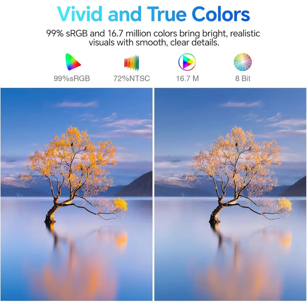 The 27" pc monitor feature three-sided slim bezels and a compact footprint, 178°wide viewing angle and ultrathin framless design maximizes the display area and enhances the overall viewing experience.
