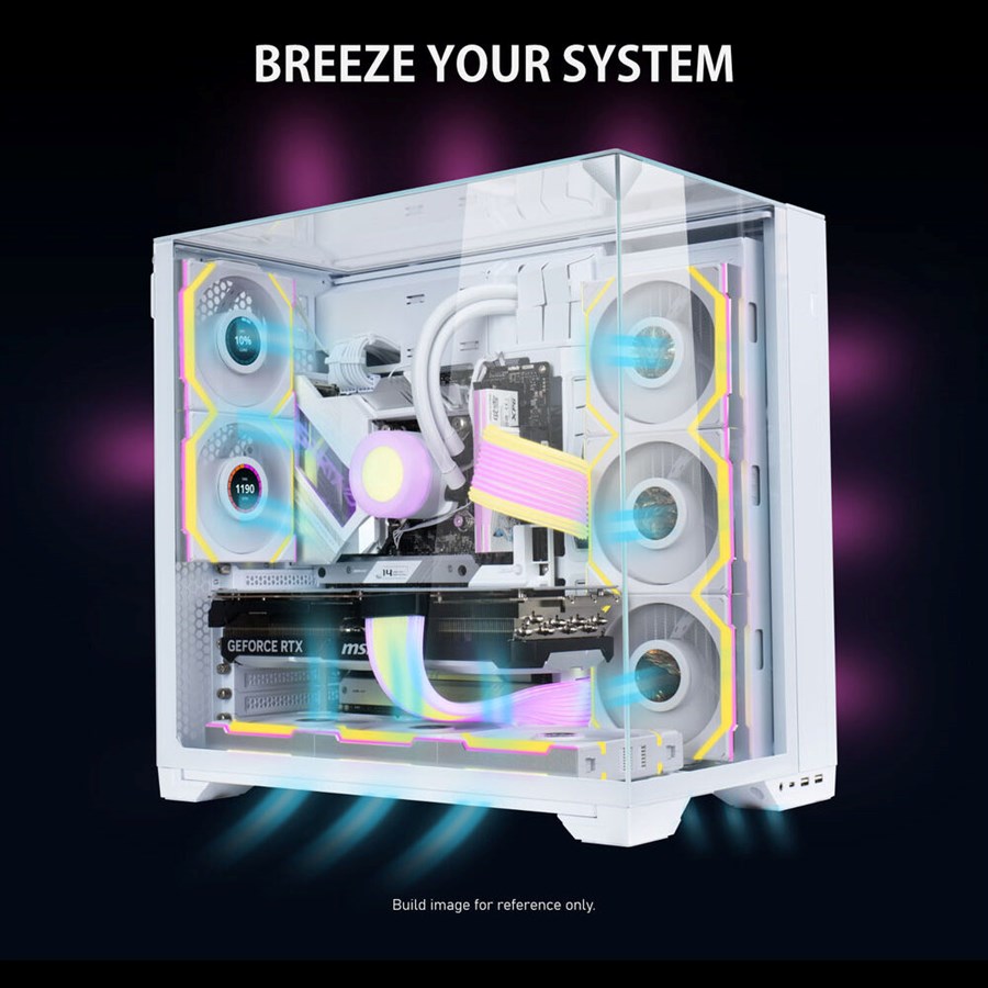 Configure the 1.6" IPS screen to display performance information from different components, or add your own custom graphics. You can also use preset vertical or horizontal animations that move across daisy chained fans. The 400 x 400 resolution display has a 500 nit brightness with support for full 24-bit SRGB color.