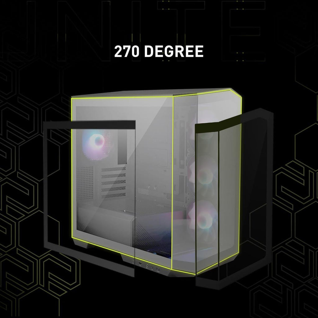 To meet the desire to show the ARGB PC build, the MAG PANO M100 Series comes with a 270-degree panoramic display, get more enhancement of aesthetically pleasing and cleanliness, supports a back-connect motherboard, and comes with the reverse-blade fan on the side, a 1-to-4 ARGB-PWM control board to let user organize cables easily.