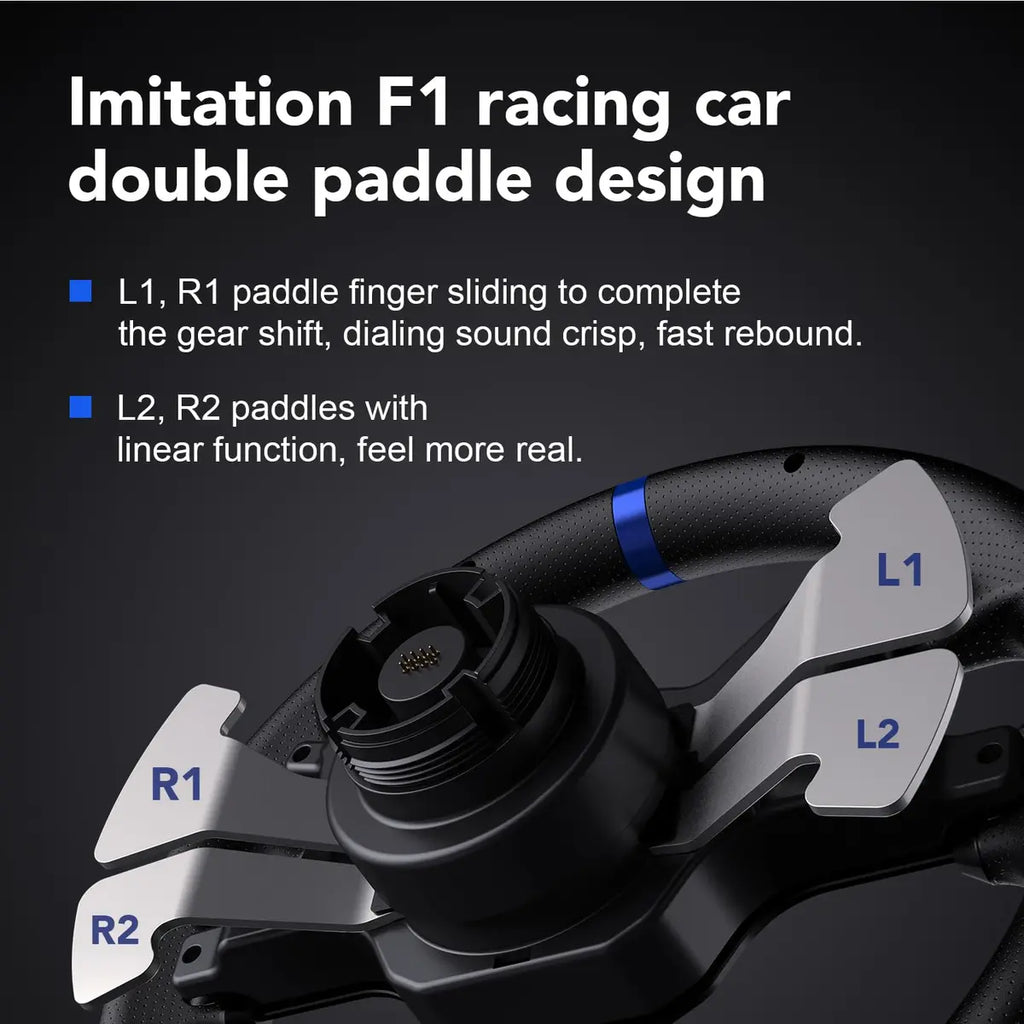 Excellent Plate Design: 300mm large Plate, comfortable to hold, the plate body supports 270 * 900 degrees one button to switch, 900 degrees can be rotated two and a half turns, consistent with the car plate. Steering wheel detachable structure design, activate the racing genes to release the passion of the track. Imitate Formula's paddles design, it shifts gears and drifts in one fell swoop.