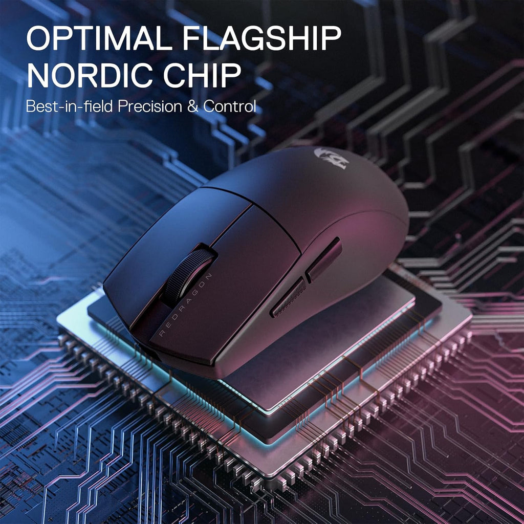 • 4000Hz Report Rate - Armed with Redragon's first 4K transmission tech and Nordic flagship chip, unleashing the precisest tracking, the fastest moving and the lowest consumption performance, the mighty beast is on the loose.