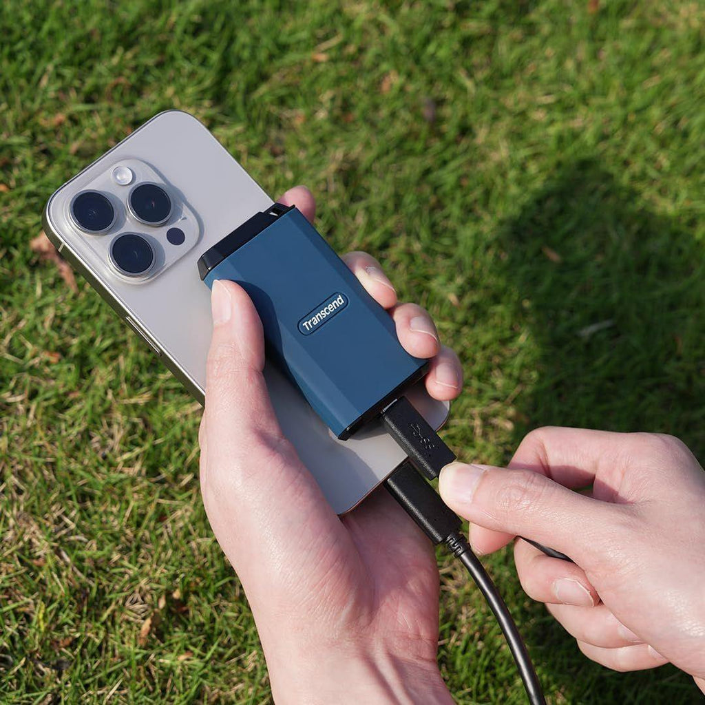 Transcend's ESD410C portable SSD offers incredible speeds over a USB-C 20Gbps interface. An integrated SLC Cache provides enhanced read/write speeds of up to 2000 MB/s. Whether it's media or gaming files, everything can be transferred in no time at all. ESD410C supports high sustained write speeds, enabling ProRes 4K/60fps recording directly from supported devices such as iPhone 15 Pro/Pro Max.
